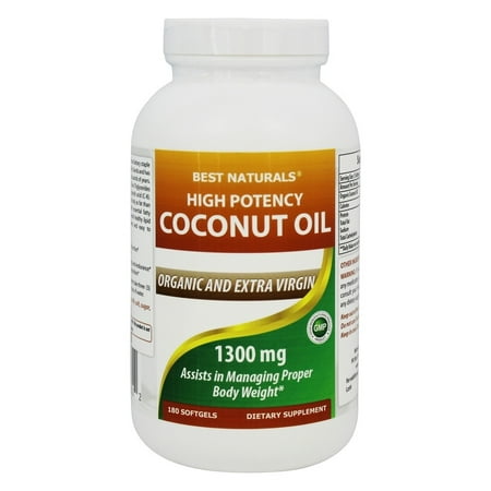 Best Naturals - Organic High Potency Extra Virgin Coconut Oil 1300 mg. - 180 Softgels - Walmart.com
