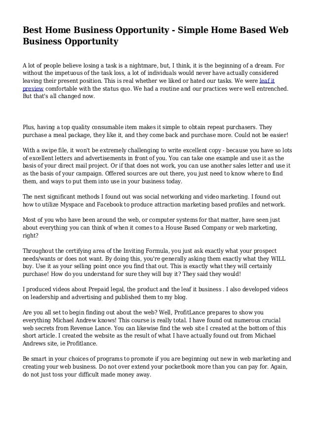 Best Home Business Opportunity - Simple Home Based Web Business Oppor…